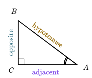 Figure6.3.8.From the perspective of angle \(A\text{,}\) all sides of a right triangle can be labeled.